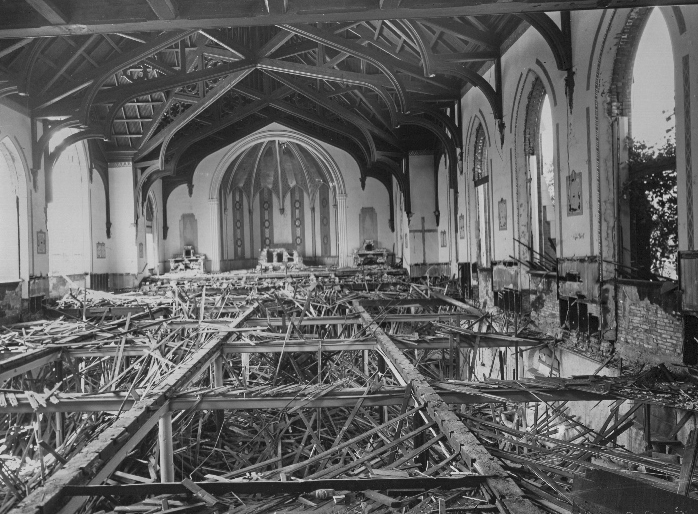 Salvaged from St. Leos in 1978 to make way for yet another vacant lot. St. Leo’s was one of the Kerry Patch parishes (Irish) of North St. Louis. The corner stone still stands at the intersection of Mullanphy (St. Louis Avenue) and 23rd Street. We have 1 for sale, and show how we used several more in our building.